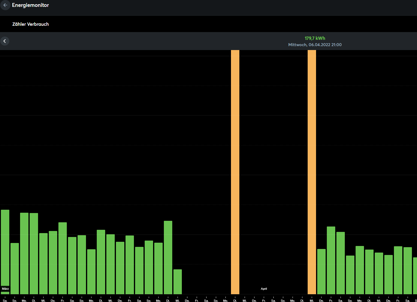 Wie kann man die Werte in dieser Anzeige des Zählers vom Energiemonitor nachträglich anpassen? Die Skalierung der Visu ist mit dieser Störung komplett zerzaust.