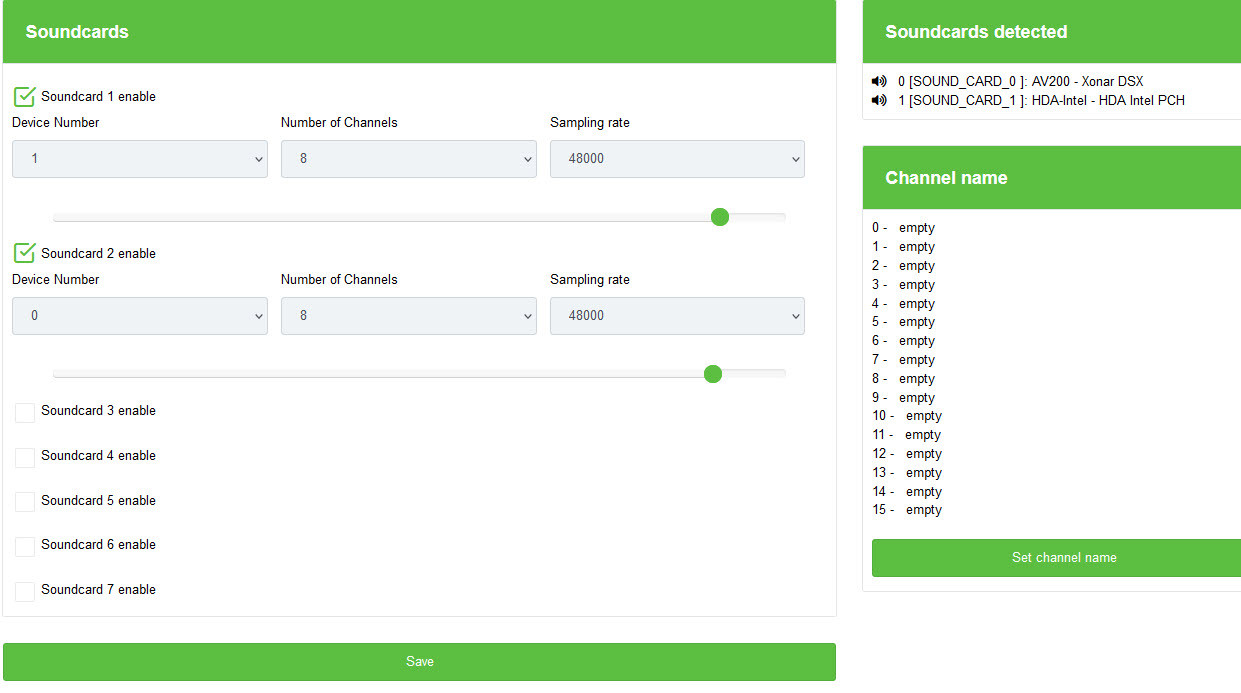 screen shot of Soundcard Settings (WebUI) attached below main message