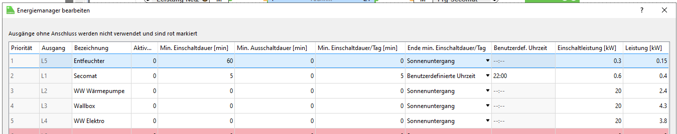 Darauf bin ich beim Probieren gestolpert, als ich statt kW (wie es der Baustein erwartet) W angelegt habe. Auf einmal spielte alles verrückt. Das musste ich korrigieren, dass an den Lx Eingang nur eine Leistung gefeedbackt wird, wenn tatsächlich der Ausgang dazu aktiv ist, sonst nicht.