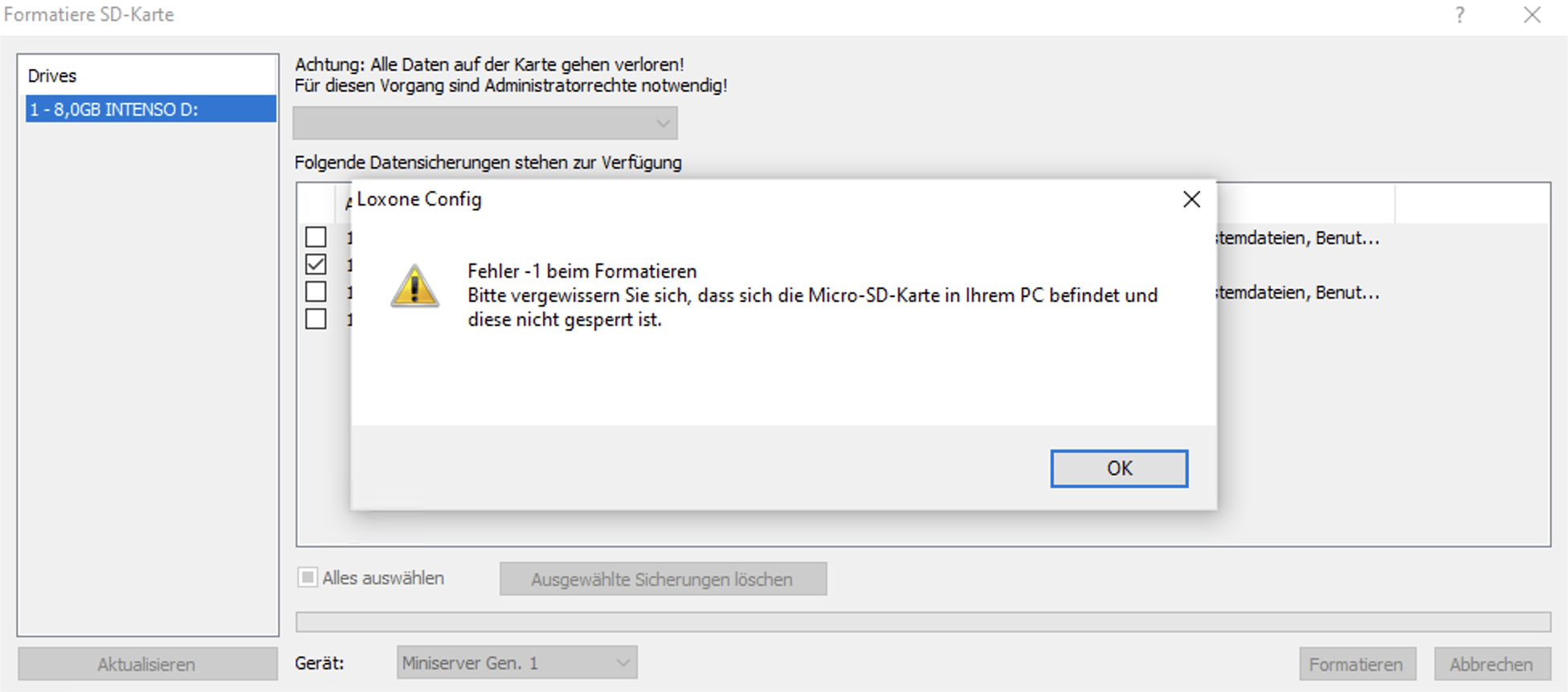 Habe die Karte 2x; bei der einen funktioniert alles, bei der anderen diese Meldung.