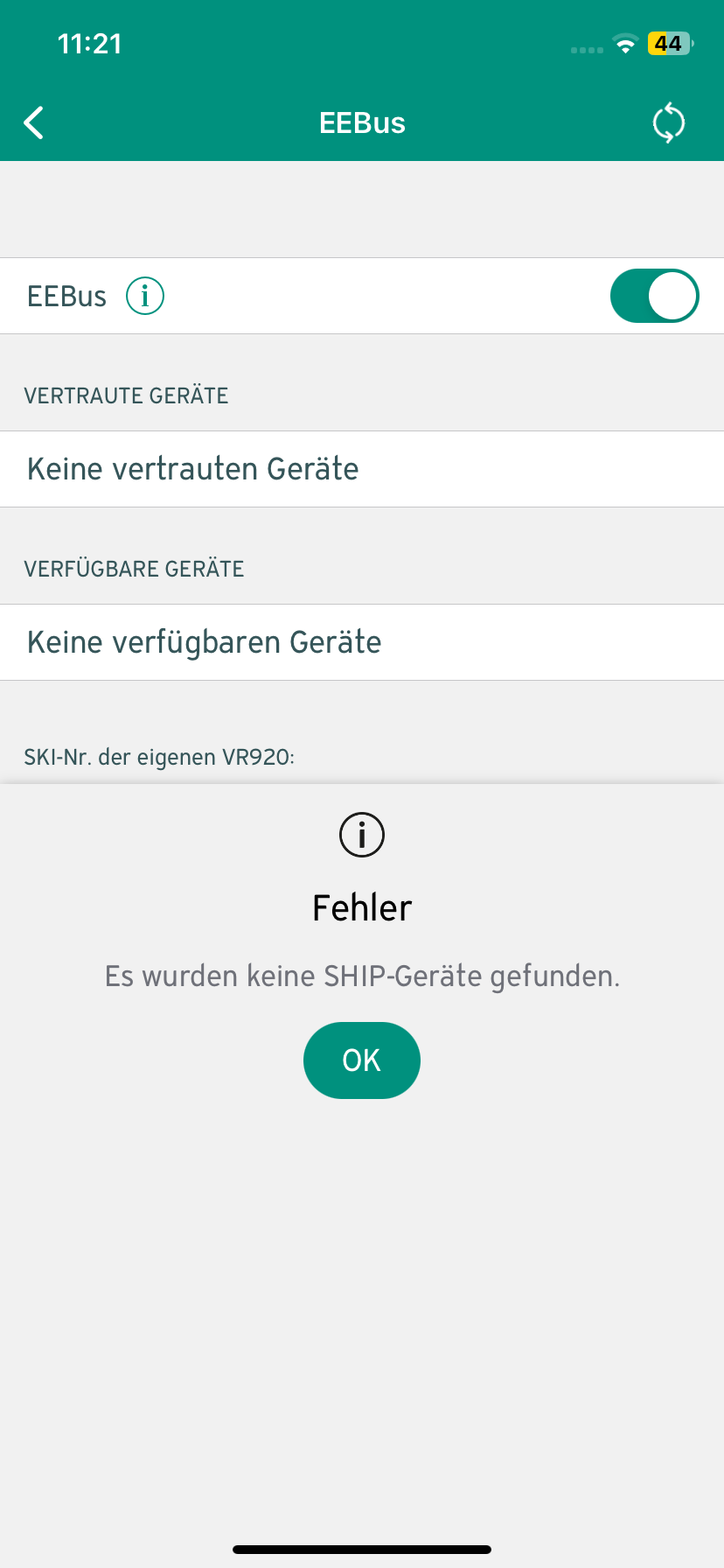 Leider bisher ohne Erfolg. In der Vaillant App bekomme immer die Fehlermeldung "Es wurden keine SHIP-Geräte gefunden" und in der Netzwerksuche von Loxone findet er leider die VR921 nicht. Egal in welcher Reihenfolge ich das Aktivieren des EEBus in der Vaillant App bzw. die Netzwerksuche durchführe.