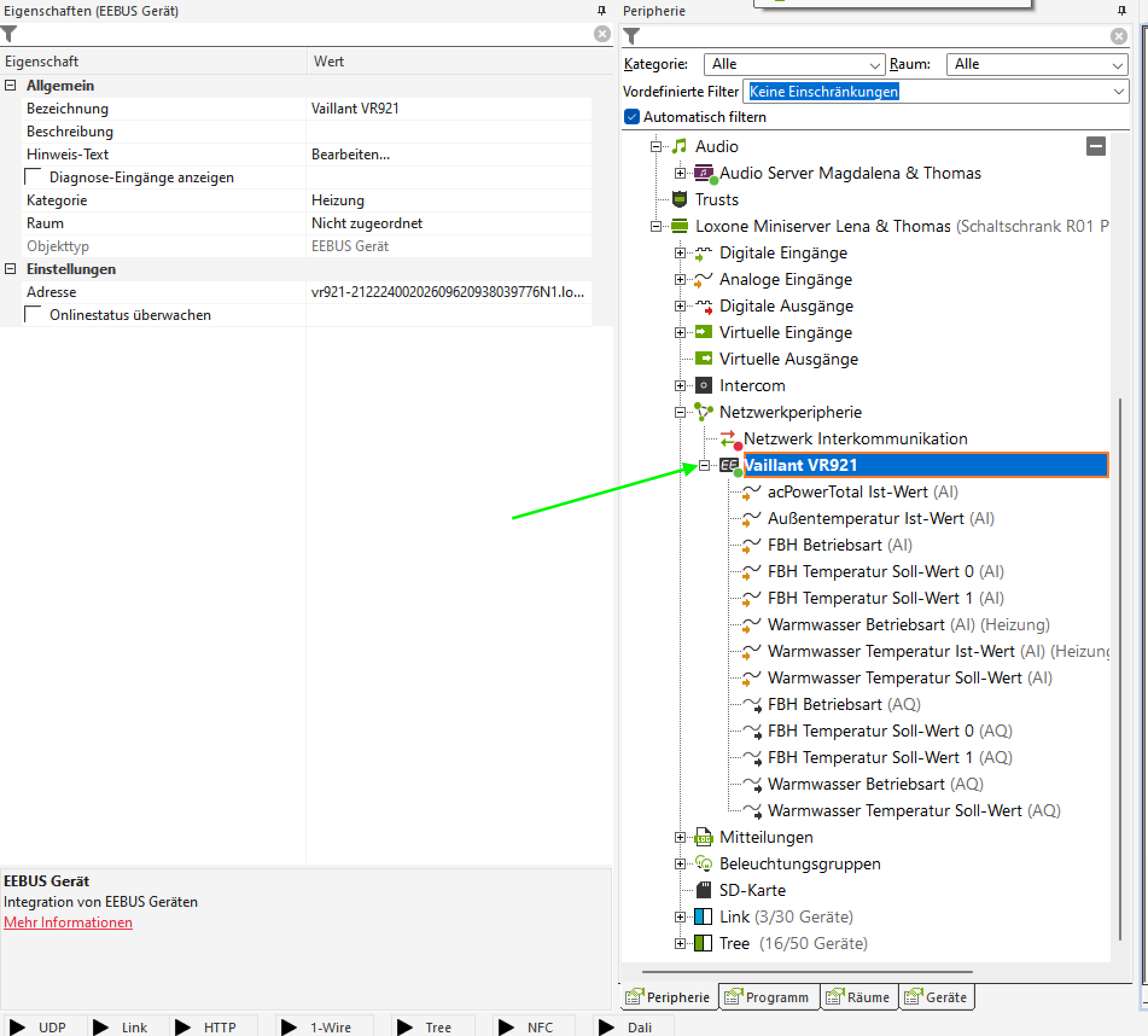 Ich versuche seit geraumer Zeit meine Vaillant Wärmepumpe via VR921 und EEBus mit Loxone zu verbinden. Siehe dazu auch "https://www.loxone.com/dede/kb/eebus-geraet/"