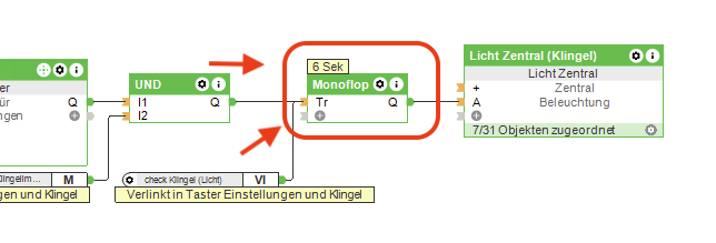Ich habe mir eine Lichtklingel programmiert, die soweit auch in den eingestellten Räumen funktioniert.