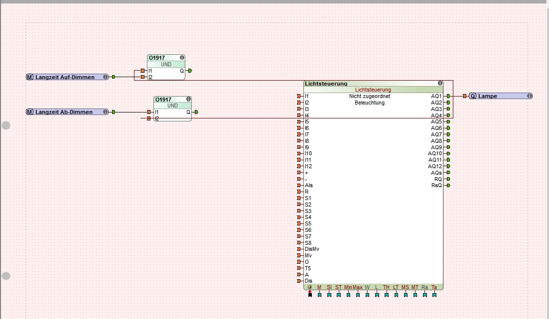 Möchte jetzt gerne mit einen Langzeit klick auf der Austaste herunter dimmen und mit einen Langzeit klick auf der Szenen Taste auf Dimmen.
