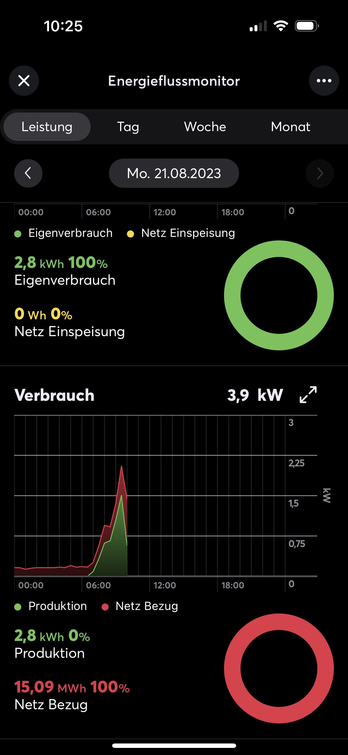 ja, da stimmt was mit der Einheit nicht. Im Balkendiagramm der Monatsübersicht sind es 15 kW. Aber auch das stimmt nicht. Mein Netzbezug liegt aktuell bei circa 3kW pro Tag was hauptsächlich durch Aktivitäten der Wärmepumpe sowie Heizstab außerhalb der PV Produktion verursacht wird.