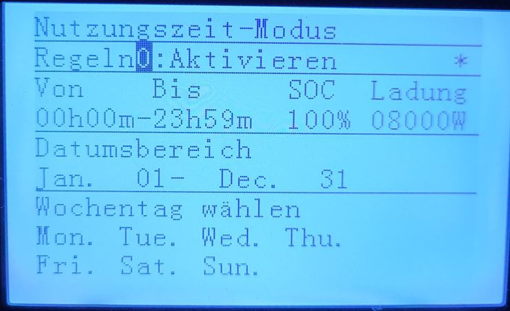 Damit die Steuerung über Loxone funktioniert, müssen am Wechselrichter einmalig die Zeitparameter gesetzt werden.