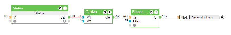 Wenn der Statusbaustein den Wert 2 mehr als 10 Sekunden hat, soll die App eine Benachrichtigung senden.