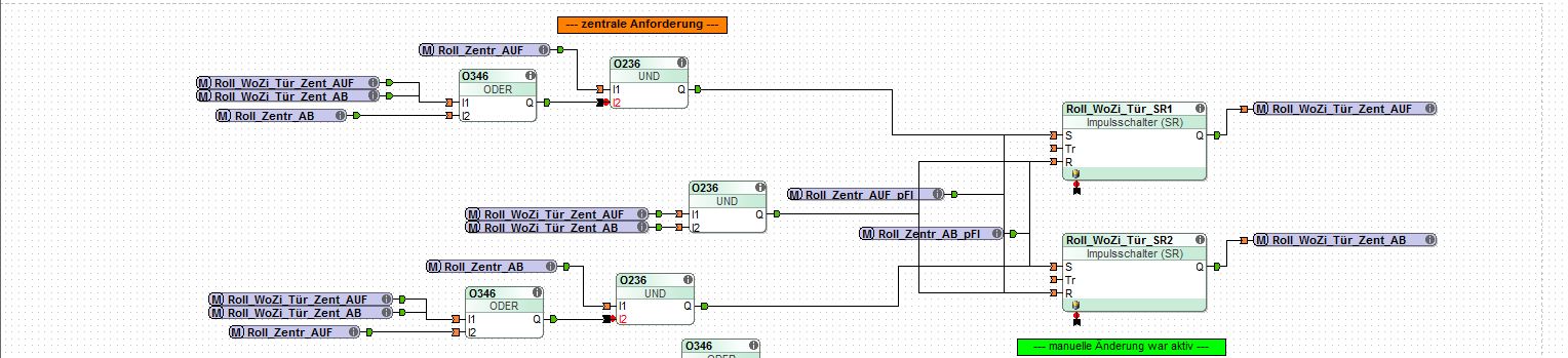 Auch eine Vorrort-Steuerung über Taster ist beachtet, wenn du diesen bedienst, wird der "Automtik-Modus" für diesen bis zum nächsten Erreichen das gleichen Soll-Status von Zentrale gemerkt.