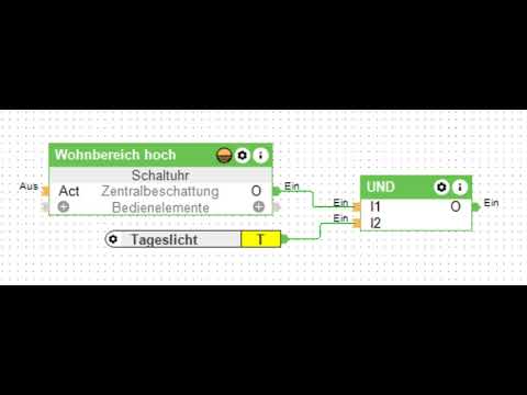Ich habe folgendes Szenario bei mir entdeckt. Ich möchte gerne mit einer UND Verknüpfung feststellen, ob die Schaltuhr geschaltet ist und ebenfalls Tageslicht vorhanden ist. Ans Ende der Steuerung kommt dann ein Monoflop, welches die Rolladen ansteuern soll.