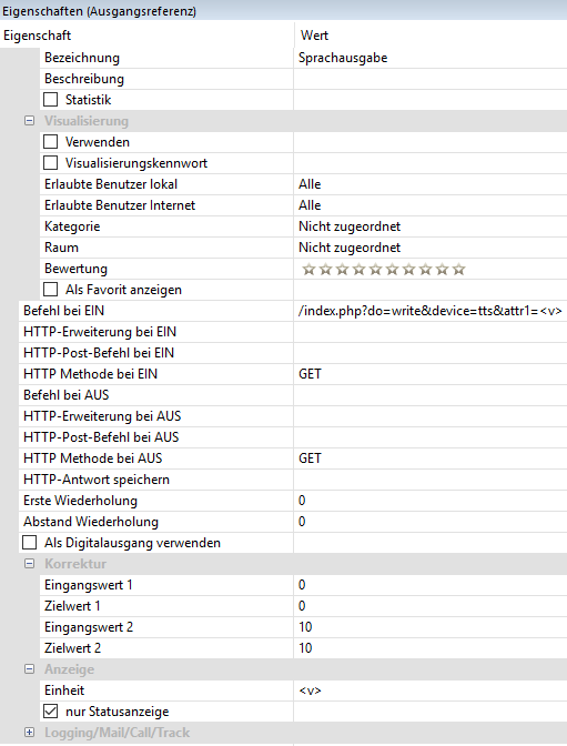 Natürlich könnte ich die Ausgänge nun als digitale verwenden und die gesamte URL im Ausgang (nicht HTTP-Befehl) definieren, aber