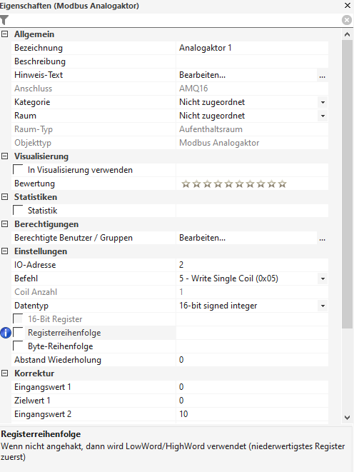 Da ich mit Modbus nicht als zu sehr bewandert bin, scheitere ich schon an der Frage ob es ein Digitaler oder Analoger Sensor/Aktor ist.