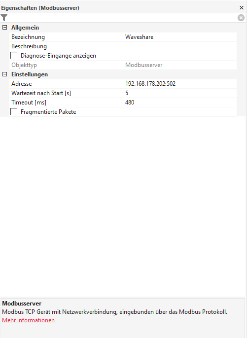 Hier mal die Einstellungen die ich im Waveshare und Loxone vorgenommen habe.