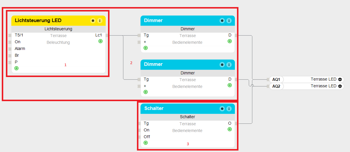 Mittels ChatGPT habe ich dann noch 2 Stunden lang div. Umwege über Dimmerbausteine, Schalter etc. versucht um dem Problem irgendwie auf die Schliche zu kommen, aber keine Chance.