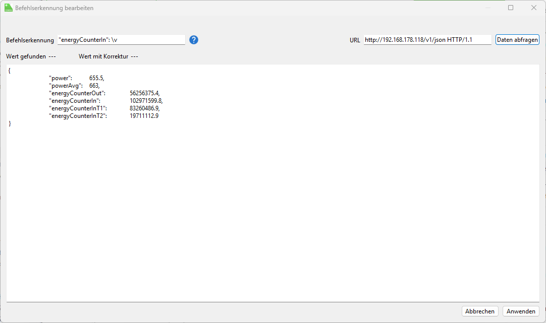 ich bekomme leider keine Werte geliefert. Habe sicherlich wieder irgendwo ein Leerzeichen oder sowas nicht korrekt eingetragen..