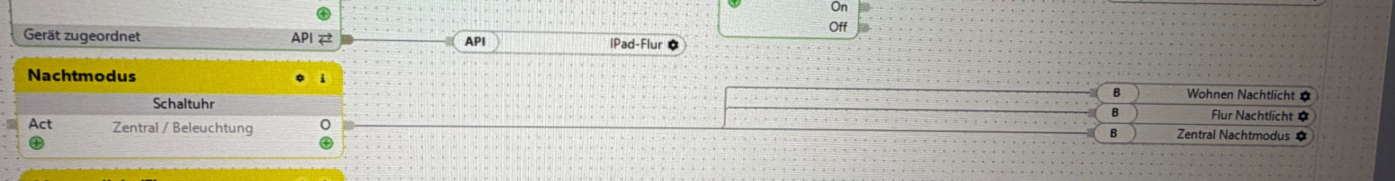 ich habe Frage bzgl. meines Projektes bei der mit auch die KI nicht weiterhilft. Ich habe im Gang einen Bewegungsmelder der über die Helligkeit schaltet oder auch nicht. Nun hat mir mein Elektriker den Nachtmodus bereits angelegt. Ich möchte jetzt den Nachtmodus aber nicht nur mittels App auswählbar machen, sondern mittels einer Schaltuhr. Also zum Beispiel von 21Uhr bis 7Uhr am nächsten Tag soll der Nachtmodus mit gedimmten Licht laufen. Besten Danke schon mal für die Hilfe!