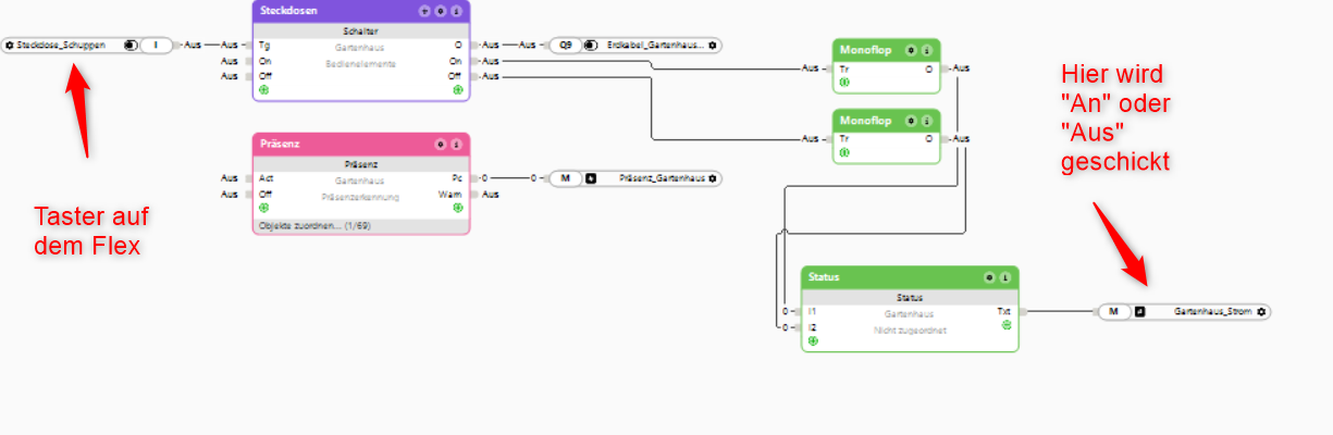 ich würde gerne über das Display ausgeben, ob durch den Tastendruck z.b. die Steckdose ein oder ausgeschalten wurde.