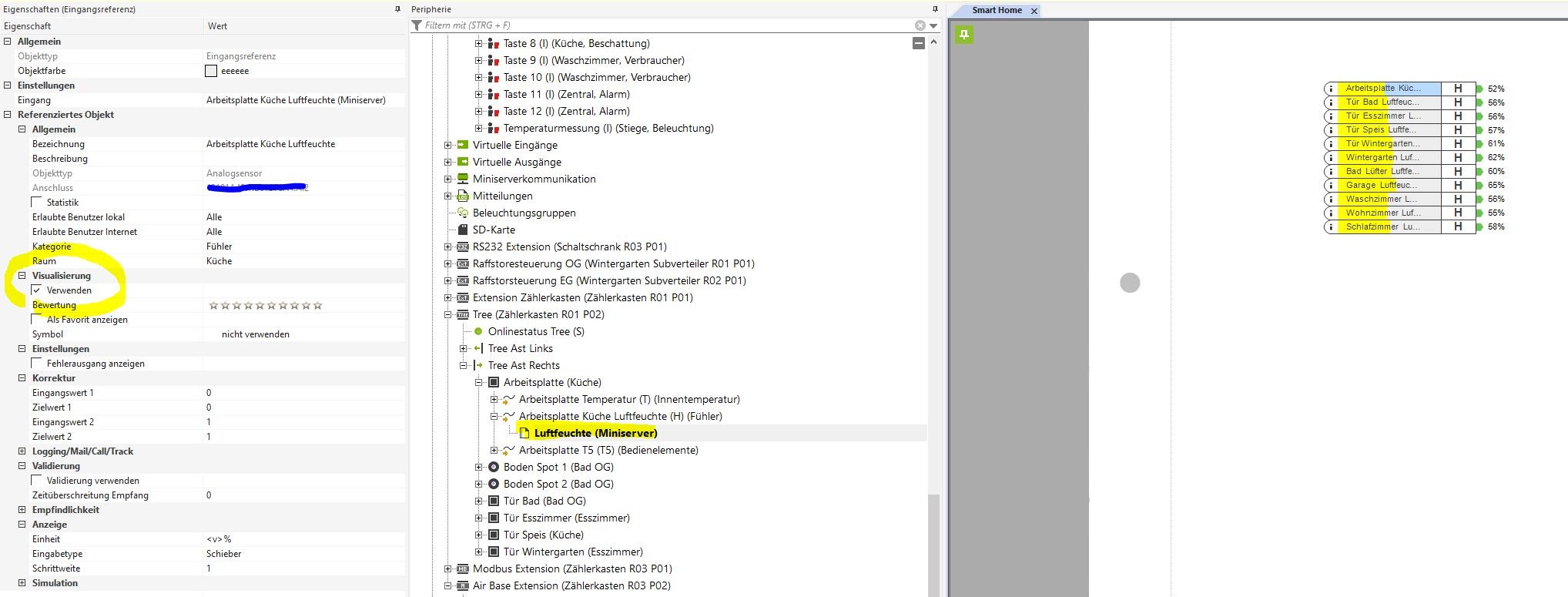 ich steh auf dem Schlauch, ich möchte mir gerne über die Touch Tree die Luftfeuchte anzeigen lassen, Temperatur läuft ja über den Baustein "Intelligente Raumregelung", aber ich finde nichts für die Luftfeuchte?