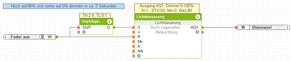 Wie kann ich sowas realisieren? Das Licht soll z.B. von 0% auf 80% innerhalb 3s und wieder zurück auf 0% in 3s usw.