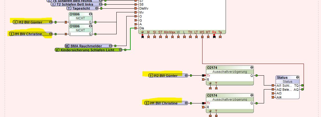 Aktuell hat meine Config eine separate Lichtsteuerung über den BWM für Flur OG und eine separate für den Flur EG. Das Treppenlicht hängt derzeit am Baustein für Flur EG.