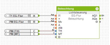 Der Baustein scheint sich das intern zu merken. Den Unterschied, ob das Licht über T1 und PM eingeschaltet wurde, drückt sich in AQs aus (bei T1 AQs = -1; beim PM AQs = 1).
