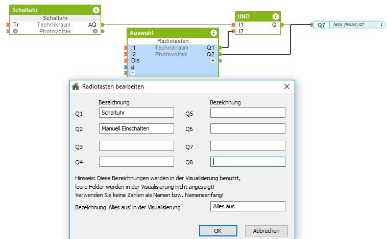 Dieser Verbraucher soll sowohl über einen Taster/Schalter (in der Visu) als auch über eine Schaltuhr ein oder ausschaltbar sein.