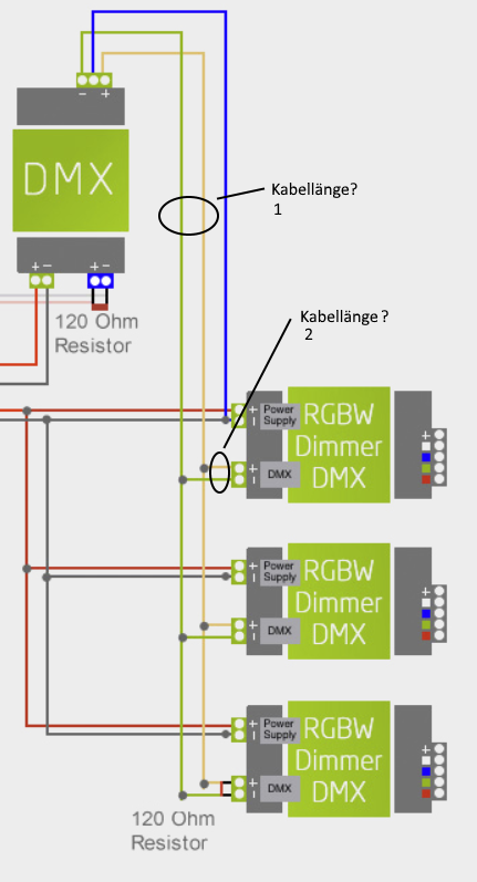 Der Loxone Dimmer ist etwas eigenartig - jedes normale DMX-Gerät führt normalerweise Data+, Data- und GND extra und unabhängig von der Versorgung durch.