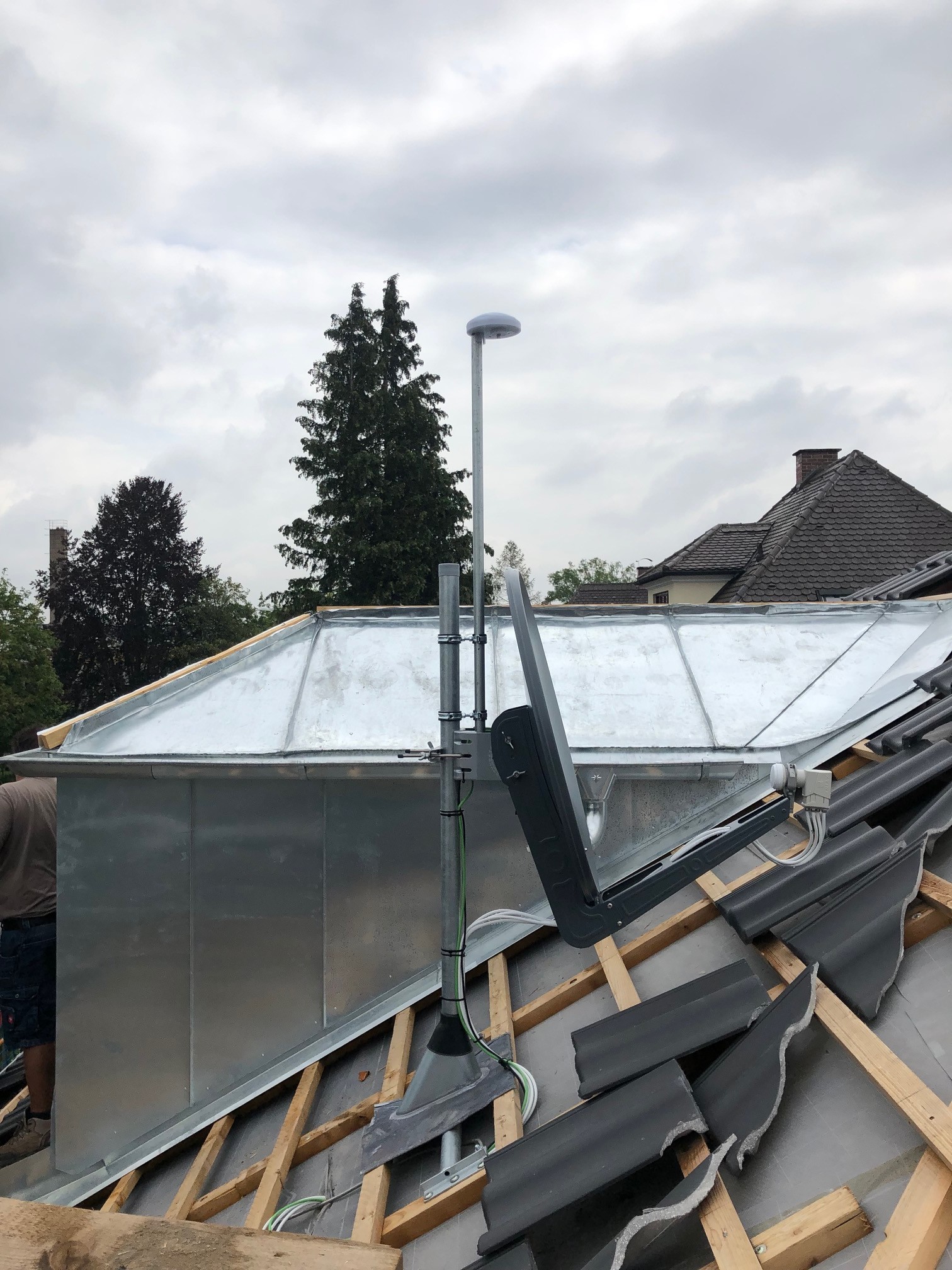Baue eine KNX-Loxone Haus und die Wetterstation wird auf dem Dach über der SAT Schüssel montiert.