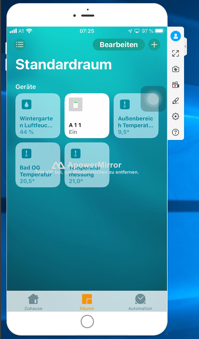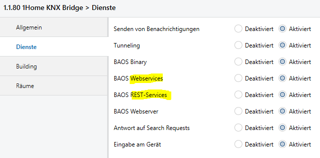 Als Basis dient ein Weinzierl 777 KNX IP BAOS sprich ein universelles KNX IP Gateway mit einer 1Home Applikation.