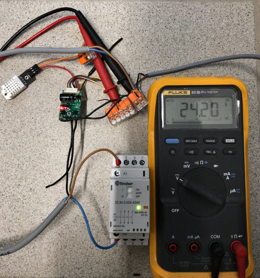 Da die Ausgänge nur schwach belastbar sind schalte ich ein Hilfsrelais damit, was auch perfekt funktioniert.