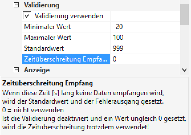 Es gibt auch die Möglichkeit den Parameter "Zeitüberschreitung Empfang" beim UDP Eingang auf einen Wert <> 0 zu setzen und einen Standardwert zu definieren, den man dann abfragen kann. Sofern ein Mailer mit der Option "für Fehlermeldungen verwenden" konfiguriert ist, bekommt man bei Empfangsfehlern automatisch eine E-Mail.