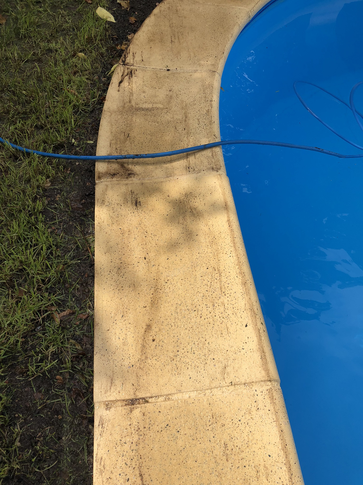 Womit ich noch nicht zufrieden bin sind die Schleifspuren auf den Poolrandsteinen. Dazu muss man allerdings auch wissen, dass unsere Stangenabdeckung von unten aktuell noch extrem verdreckt ist. Das zieht natürlich Spuren. Aber ich habe die Befürchtung, dass das nicht komplett weggehen wird - auch mit sauberer Abdeckung nicht.
