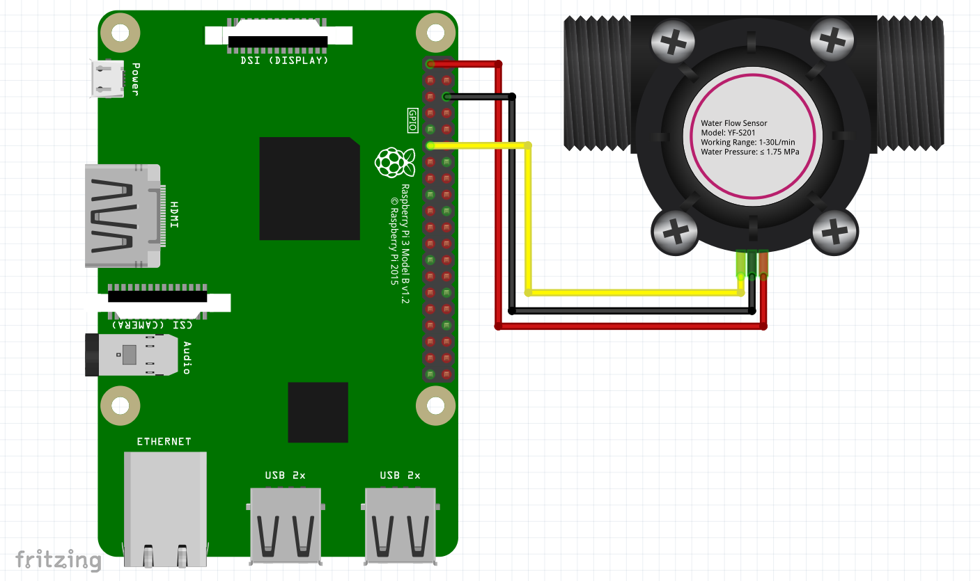 Der Sensor gibt eine Frequenz proportional zum Durchfluss aus. Bisher konnten diese Sensoren nicht an den LoxBerry angeschlossen werden, weil die diversen GPIO-Plugins zur Detektierung (höherer) Frequenzen zu langsam sind.
