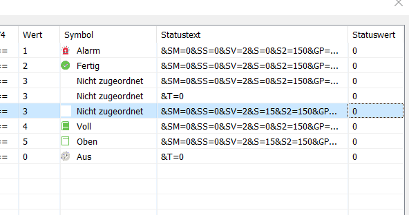Im Status (HTTP Get Codes) hab ich in jeder Zeile an den Anfang des Statustext ein & angefügt. Dann hat es funktioniert.