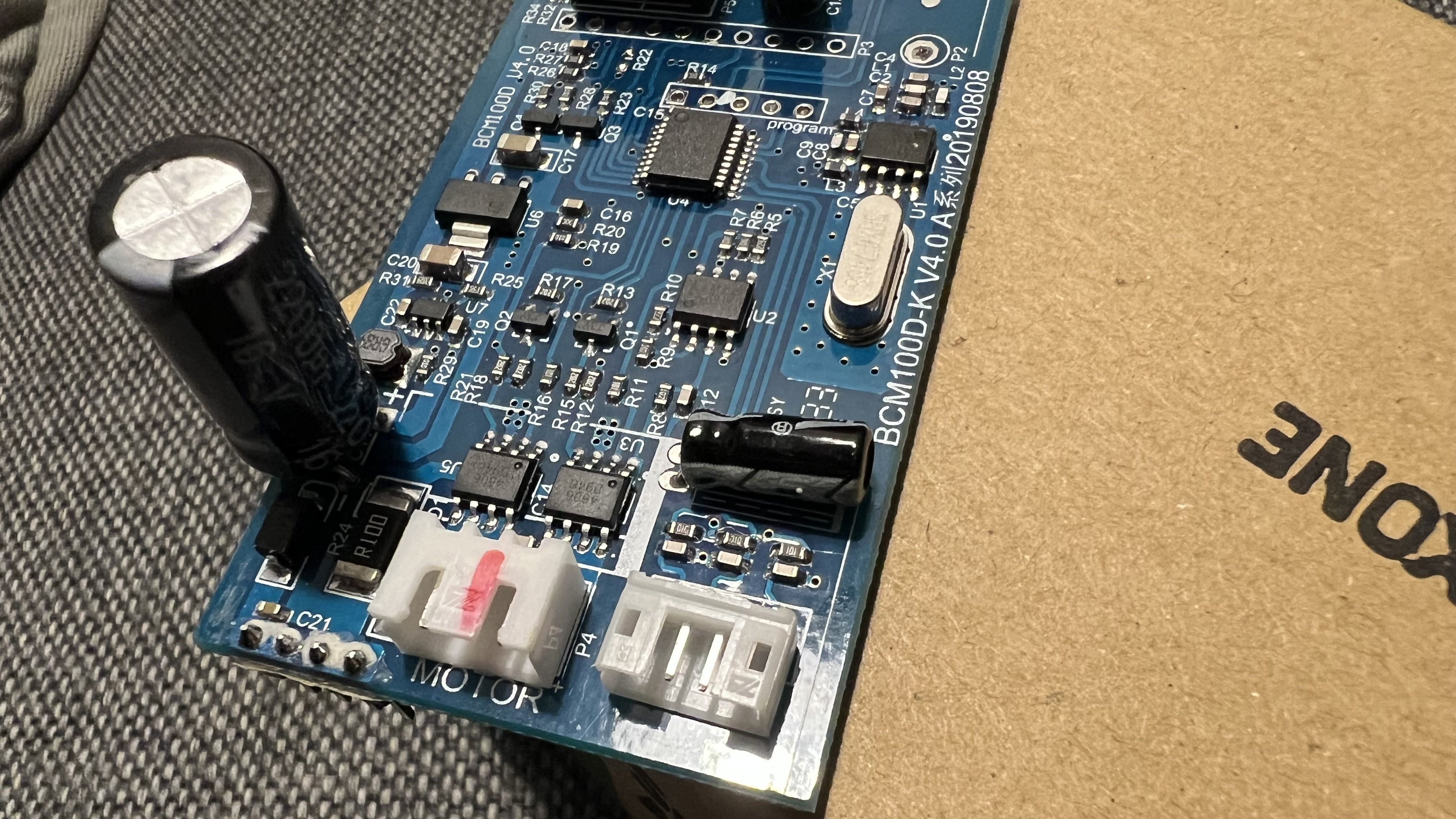 Ich habe versucht, den 12V Motor direkt an den Motor Controller anzuschließen, was auch für 1 Sekunde funktioniert hat. Danach dreht er jedoch nicht mehr weiter. Der 12V Motor hat noch 4 weitere Kabel, die vorher auch an der Platine angeschlossen waren. Ich hatte gehofft, dass ich diese nicht benötige, aber anscheinend ist das notwendig. Kann man diese 4 Kabel irgendwie überbrücken und den Motor Controller alles steuern lassen? Also über die Zeit und die Last?
