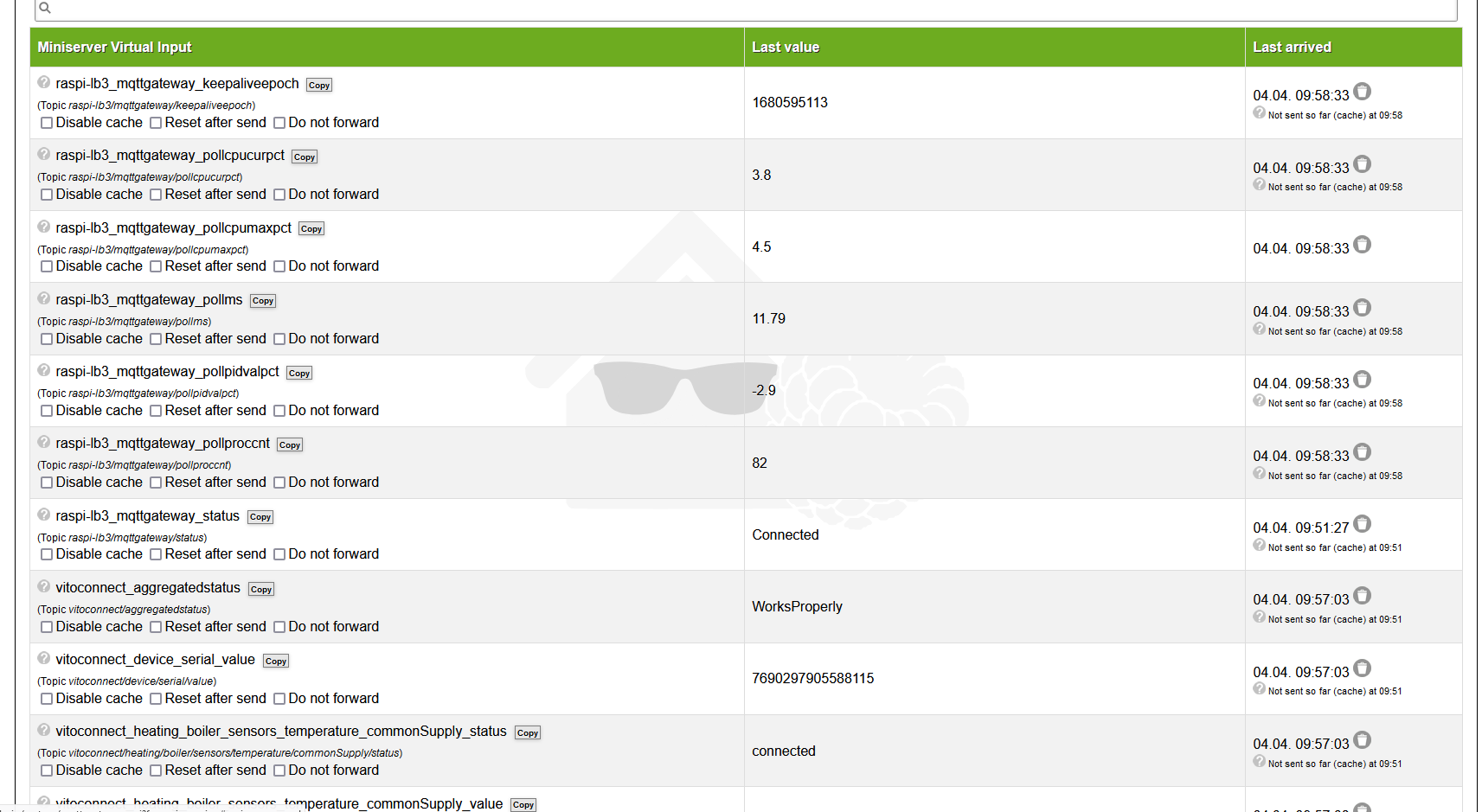 1. in der incomming overview werden alle daten grau angeziegt (nicht gesendet) obwohl die Daten im Miniserver ankommen
