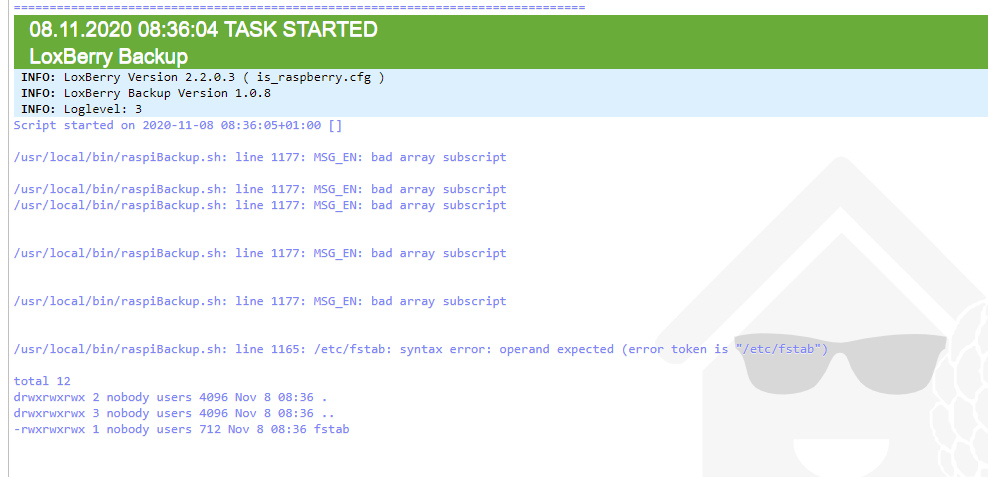 [FONT=monospace][COLOR=#8080ff][COLOR=black][B]INFO:[/B] LoxBerry Backup Version 1.0.8[/COLOR][/COLOR][/FONT]