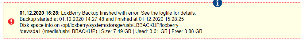 Die Loxberry-Sicherung gibt immer Folgendes zurück: ERROR: Backup failed with error code 1.