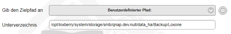 Im Verzeichnis data_ha/Backup/Loxone habe ich dem User loxberry Schreibrechte gegeben und das dann folgendermaßen im Plugin konfiguriert: