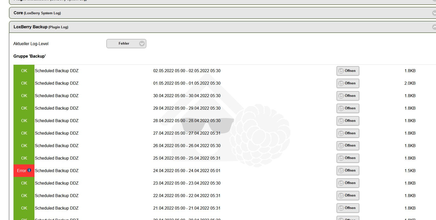 Es wird von diesem Loxberry täglich eine Sicherung erstellt und nur Sonntags kommt dieser Fehler