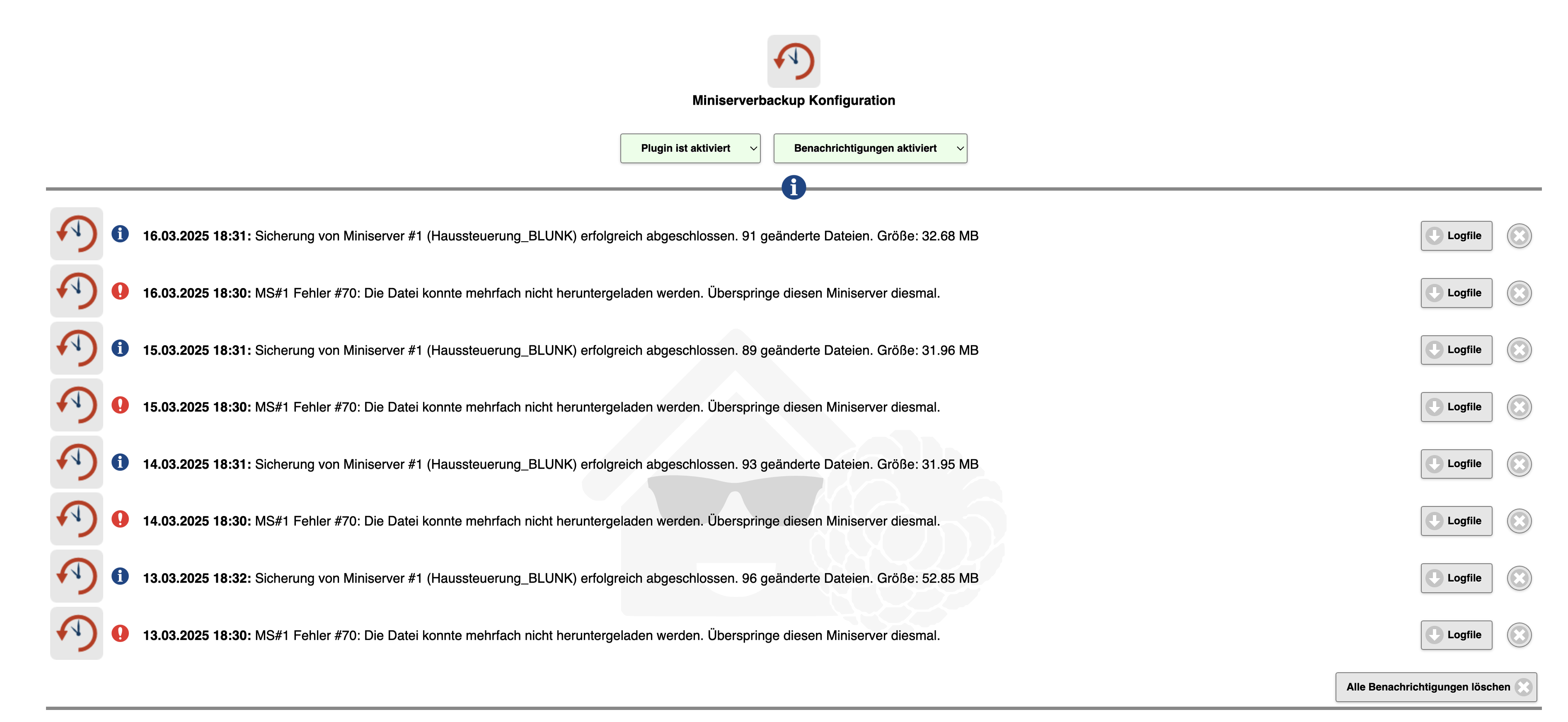 So weit so gut. Die Backups werden zum gewünschten Zeitpunkt erstellt.