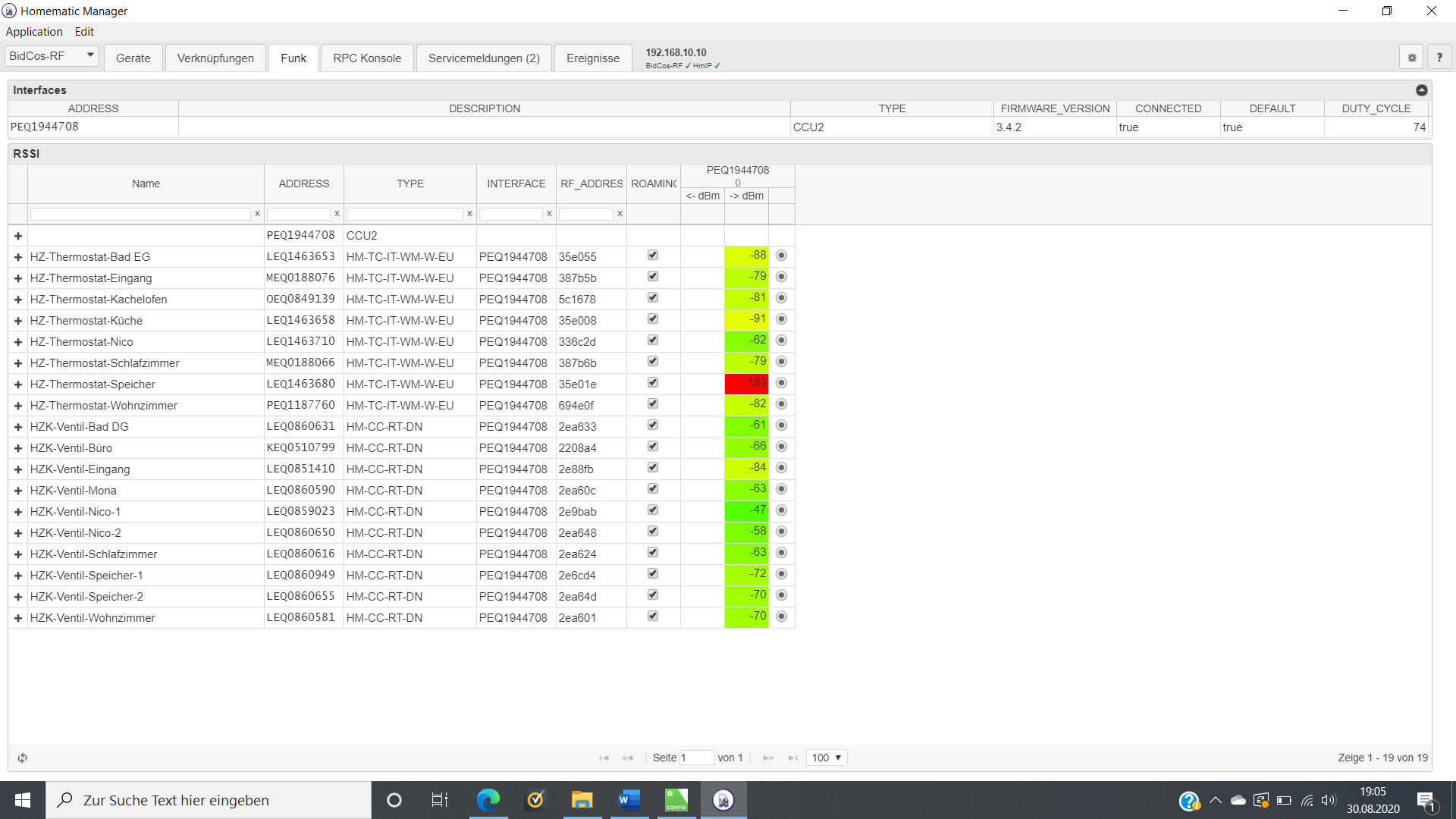 Soweit habe ich jetzt einen stabilen Betrieb von 8 Thermostaten und 10 Heizungsventilen erreicht. Was aber immer wieder sporadisch vorkommt, sind STICKY_UNREACH Meldungen (sehe ich dann im Homematic Manager V2.7 (Service Meldungen). Dort kann man diese ja dann auch quittieren.