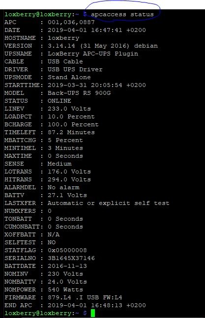 Ich habe meine FritzBox, Loxberry und MiniserverGo an einer APC Back-UPS BX 700VA hängen. Diese hängt über USB am Loxberry. Funktioniert auch alles, bekomme alle Daten ins Loxone übertragen und bei Stromausfall einen Anruf.