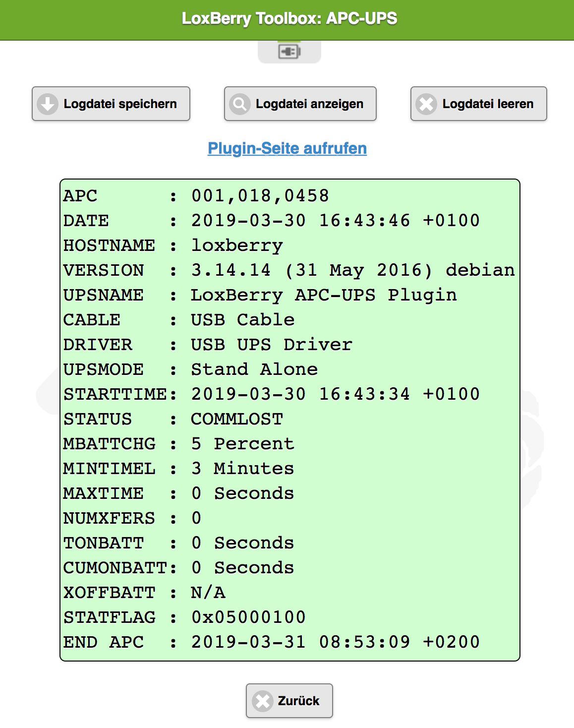 Habe mir den Loxberry jetzt neu auf meine Raspberry 3 Model B aufgesetzt, alle Plugins wieder installiert und siehe da - die USV wird visualisiert.