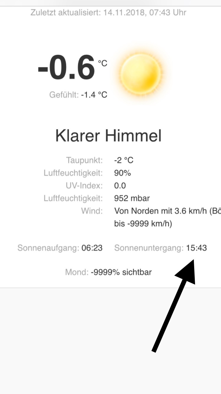 wie oben schon angemerkt wenn ich auf DarkSky umschalte kommt die richtige Zeit