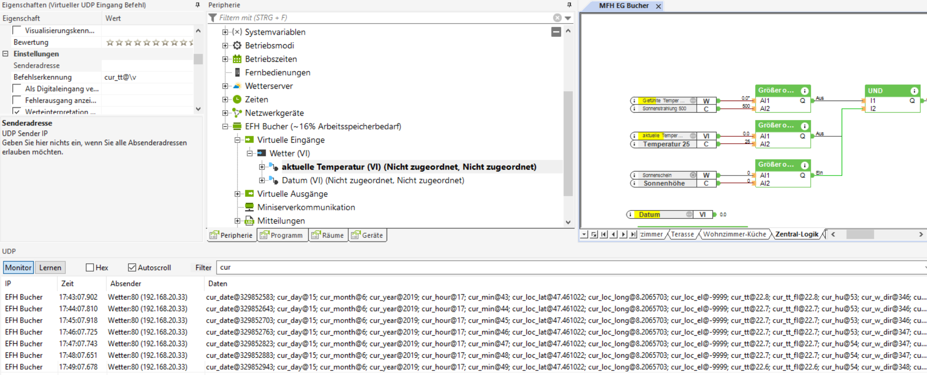 Bin ich nun richtig, dass ich zum Beispiel die aktuelle Temperatur über UDP einslese?