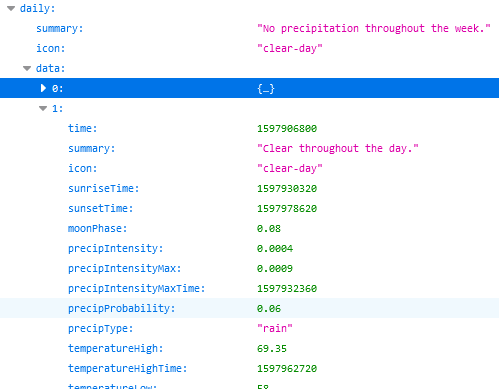 URL https://api.darksky.net/forecast/APIKEY/GEOCOORDINATES and it gives data when I copy the link in Browser.