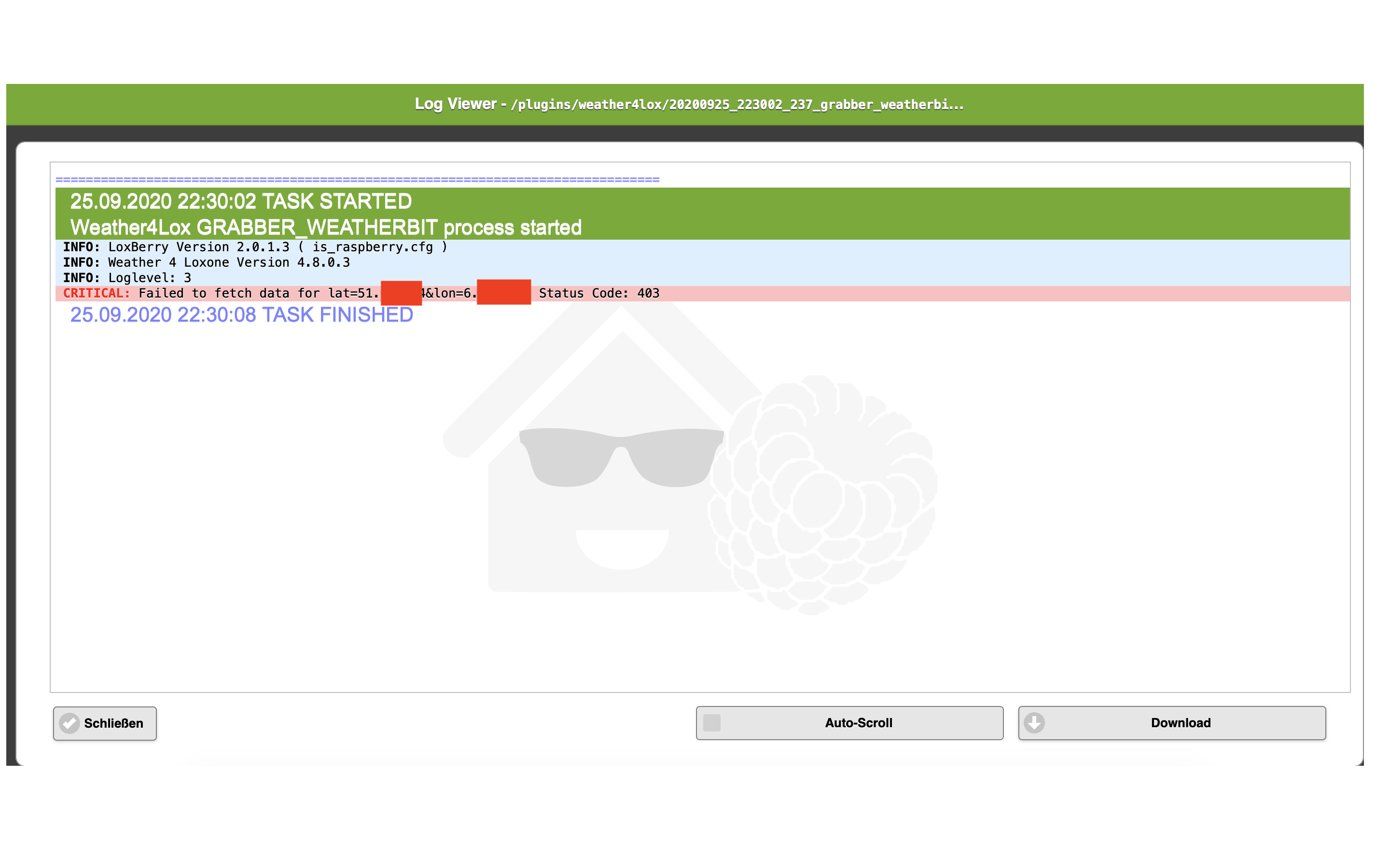 seit einigen Tagen verliert der Miniserver immer die Verbindung zum Plugin. Erst nach einem Neustart des MS werden die Wetterdaten wieder angezeigt. Mittlerweile sind 4-5 Neustarts pro Tag notwendig.
