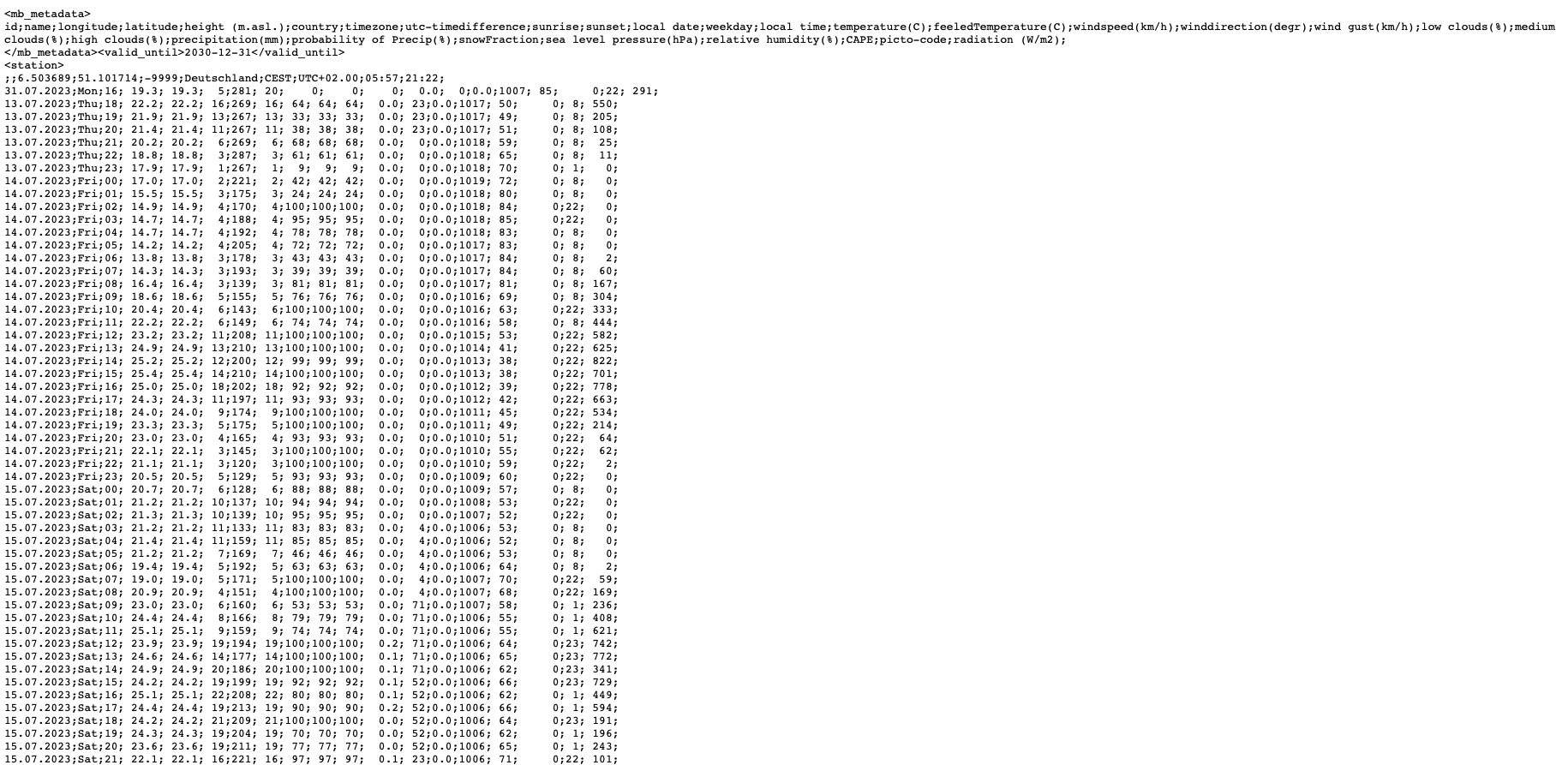 Im angehängten Screenshot sieht man, dass die Tabelle mit der Uhrzeit 21 (:00) Lokalzeit startet (Die Screenshots bzw. die Ausgaben in den Screenshots wurden nach 22:00 Lokalzeit erzeugt) mit dem korrekten Temperaturwert der Wetterstation, der nächste Wert in der Tabelle beinhaltet dann die in Loxone gerundeten 16 Grad (Im Testemulator in der Zeile mit der Uhrzeit 22 ersichtlich mit 15,9°C)