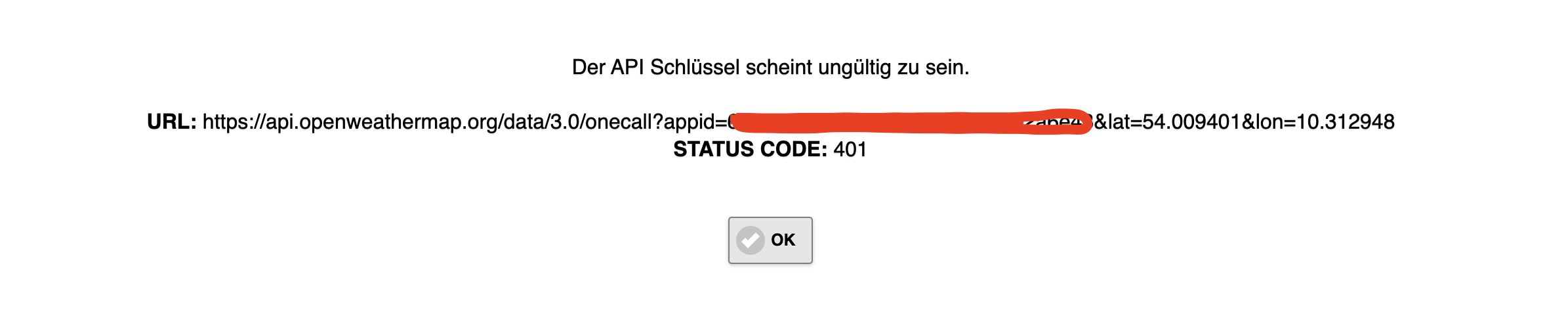 Der API Key ist eingegeben - der KEY ist registriert für OneCall 3.0 API