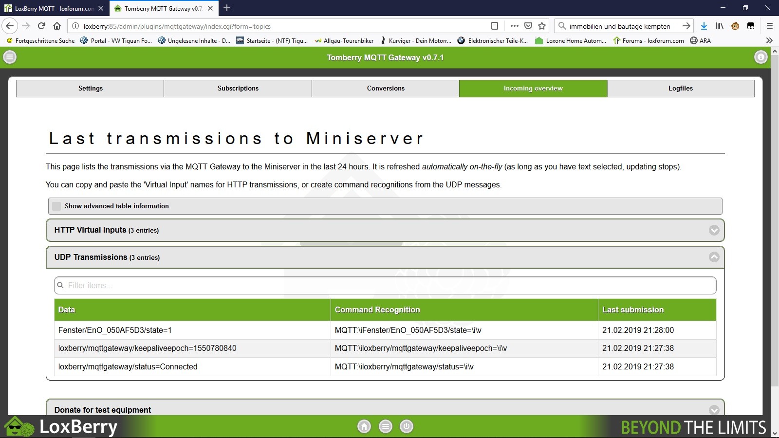 Die Kommunikation zwischen Griff und FHEM funktioniert. Im MQTT-Plugin kommen die Statusänderungen auch an, aber leider zeigt der UDP-Monitor vom Miniserver keinerlei Kommunikation mit dem MQTT an.